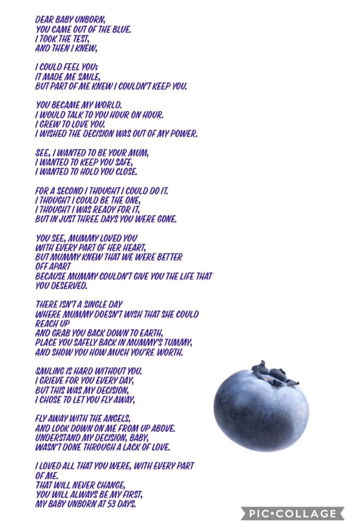 I can relate to this poem 100. ABORTION A POEMFrom the Babys Perspective. Im just a tiny someone Floating in your tummy feeling snug and warm.