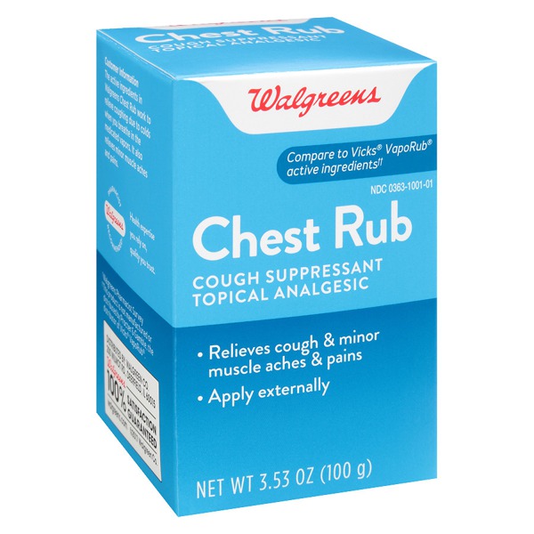 Walgreens Baby Chest Rub Soothing Ointment at Walgreens. Previously I had tried Vicks vapor rub Walgreens vapor rub and a dollar store vapor rub. Previously I had tried Vicks vapor rub Walgreens vapor rub and a dollar store vapor rub. Get free shipping at 35 and view promotions and reviews for Walgreens Chest Rub. Vicks VapoPatch with Long Lasting Soothing Vicks Vapors 5 Pack. The gentle Vicks BabyRub Soothing Ointment contains petrolatum and aloe to leave your babys skin feeling soft. Pickup 3 day shipping. Walgreens Chest Rub at Walgreens. Vicks VapoRub Childrens Topical Cough Suppressant Vicks baby rub is a soothing ointment to help comfort children when they have congestion and cough you rub it onto their neck and upper chest and it helps to soothe them when they are sick it works very well I highly recommend this it helps my daughter when she was a baby but the baby should be no less than 3 months old to use this.