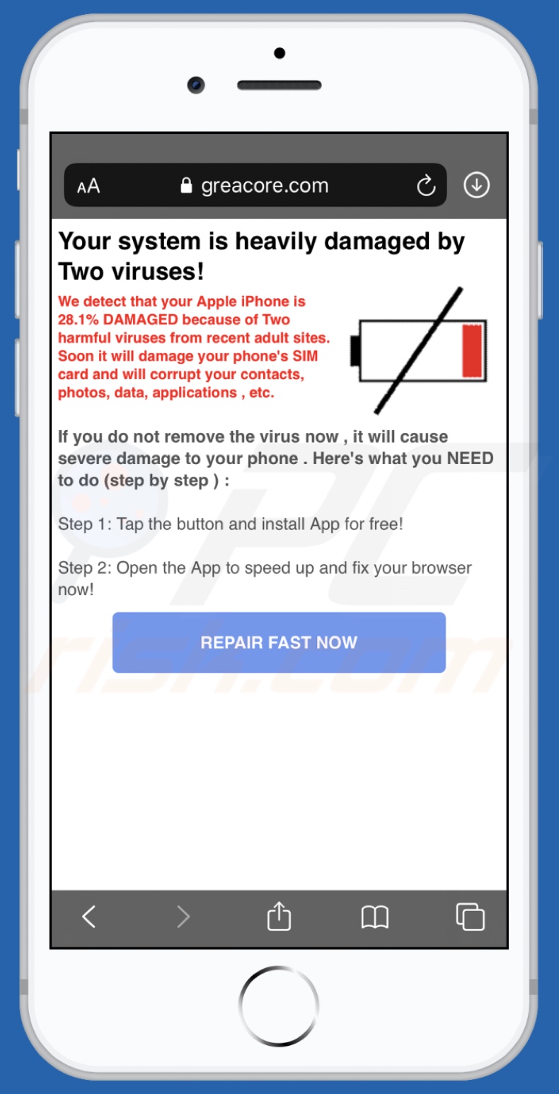 Your system is heavily damaged by Two viruses. Cadastre-se e oferte em trabalhos gratuitamente. My new Apple iPhone 7 is giving me a very long message about a virus and damage to my phone if I continue in a Google search screen.