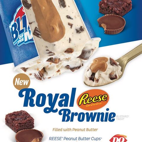 The Royal Ultimate Choco Brownie Blizzard Treat blends brownie pieces choco chunks and cocoa fudge with our world-famous soft serve for the most delectable dessert. REESE Peanut Butter Cups and chocolate brownies blended with vanilla soft serve and filled with peanut butter topping. Right now all stores need to be carrying peanut butter for the seasonal Reeses Pieces Cookie Dough Blizzard.